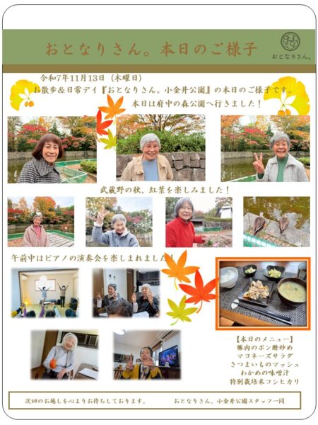 11月も半ばに差し掛かり、秋も深まって参りました。