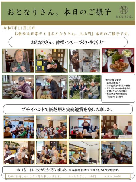 おとなりさん。上山門では本日も元気におとなりさん体操からスタートです。