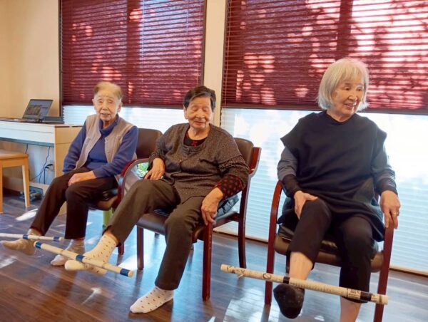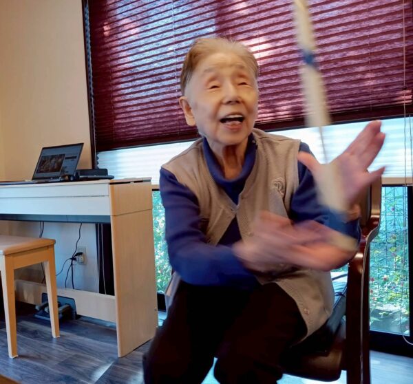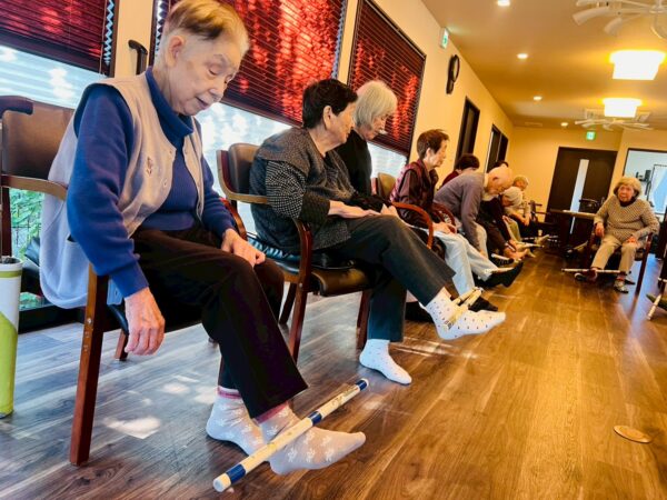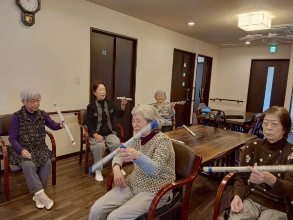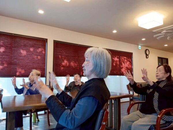 掌でバランスをとってみたり、投げてキャッチしたり回してみたりと身体、全体を使って色々な体操を行いました。