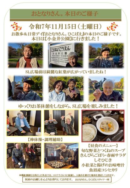 小金井市のデイサービス~お散歩&日常デイ~ おとなりさん。ひこばえ
