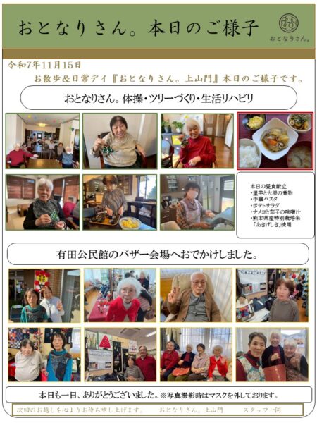 レクでのミニチュアクリスマスツリー作りや配膳の準備に大活躍です。ありがとうございます。午後からは有田公民館のバザー会場へ行ってきました。