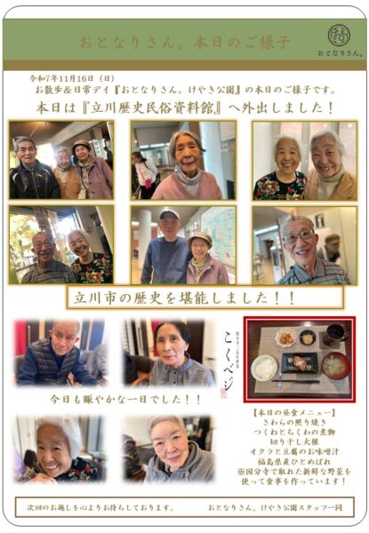 午前中は皆様趣味の時間を過ごし、昼食後午後から『立川歴史民俗資料館』へ