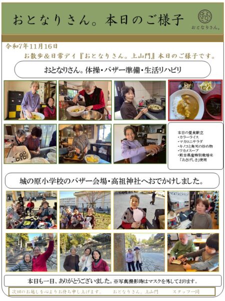 今日も皆さんと一緒に楽しく過ごす事ができました。