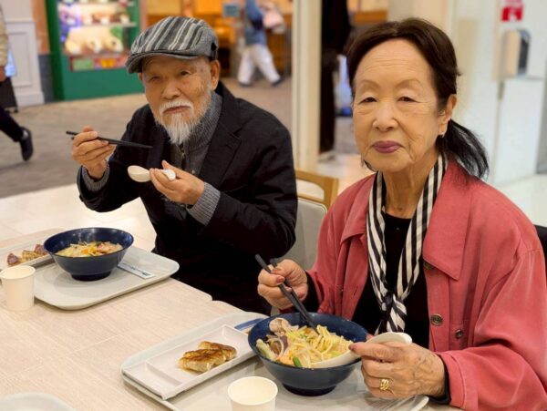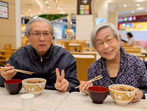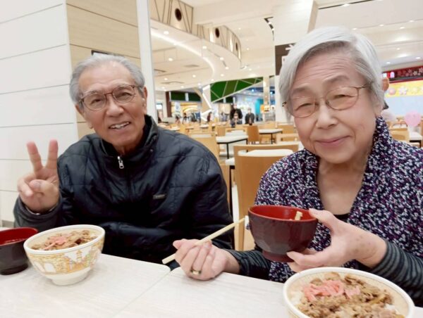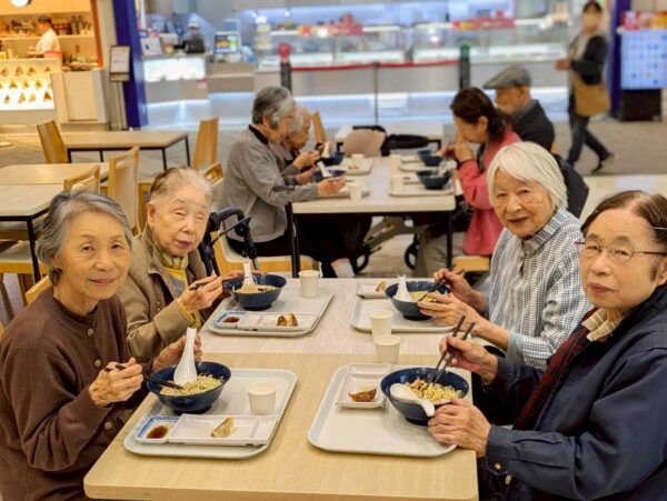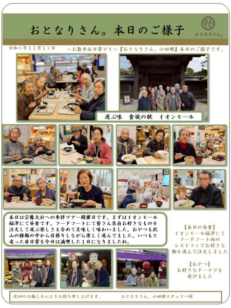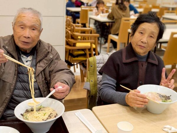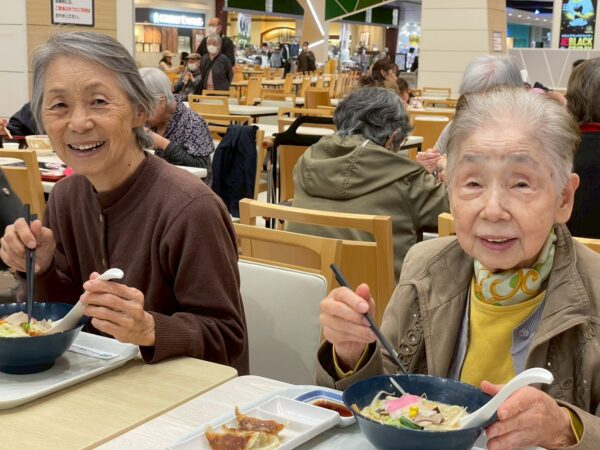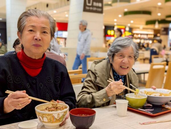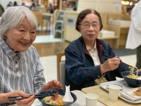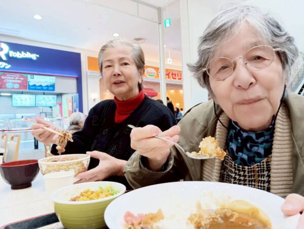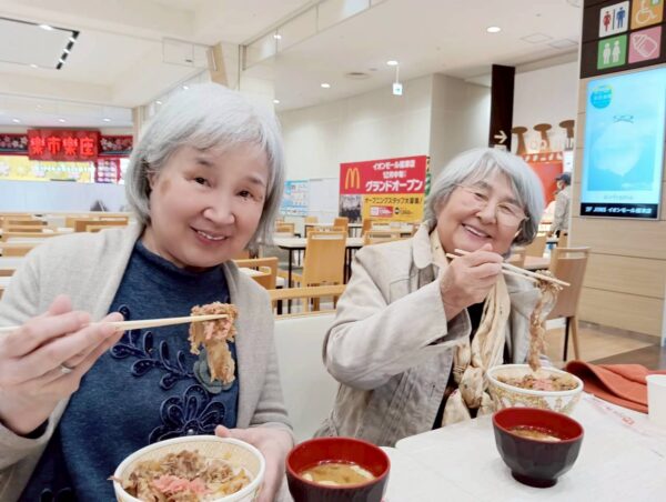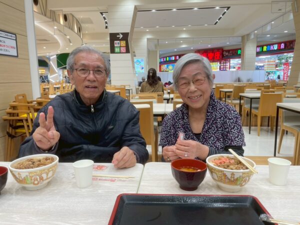本日は宗像大社への参拝ツアー開催日です。まずはイオンモール福津にて昼食です。フードコートにて皆さん各自お好きなものを注文して選ぶ楽しさも含めて美味しく味わいました。ラーメンやちゃんぽん、牛丼、カレーなど全て美味しそうで人の頼んだものに目移りしますね(笑)