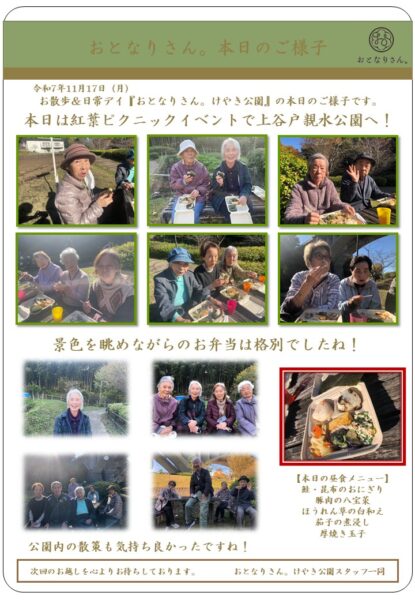外で食べるお弁当は、とっても美味しかったですね!皆様の表情もいつもと違ってとっても嬉しそうでした。
