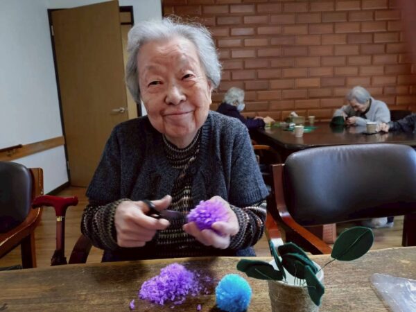 さて、午前中は制作活動です。ぼんぼんの花もどんどん完成してきました。