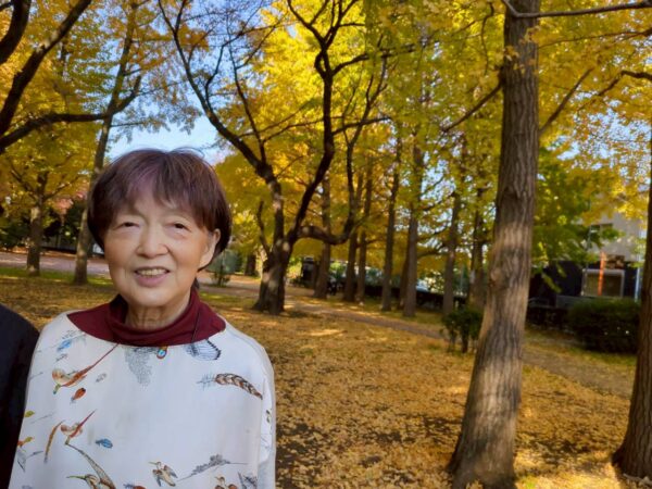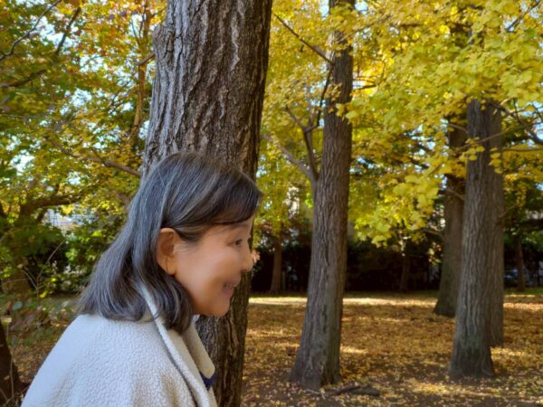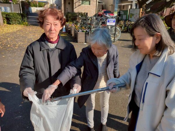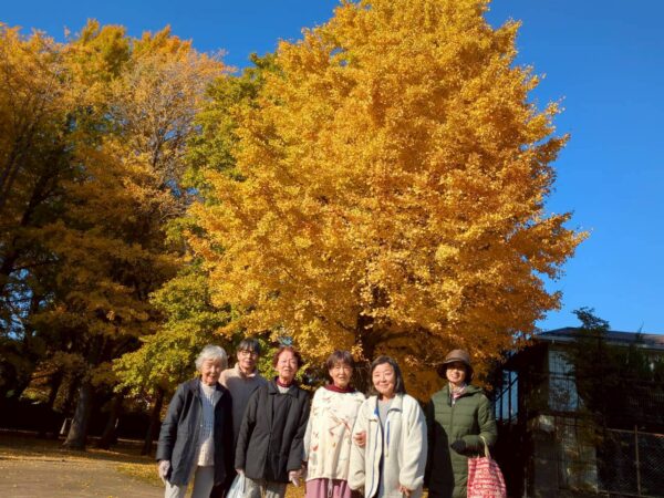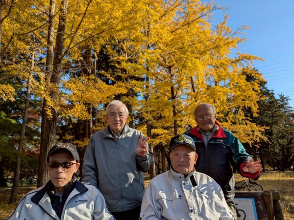 梶野公園の銀杏の木を眺めながら、地域貢献活動の一環として