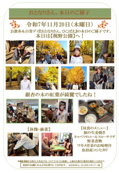 小金井市のデイサービス~お散歩&日常デイ~ おとなりさん。ひこばえ