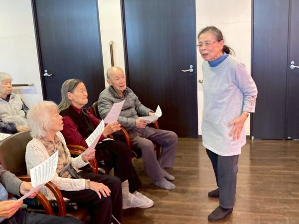 口腔体操、ストレッチ、発声練習から始まり、準備は万端です。
