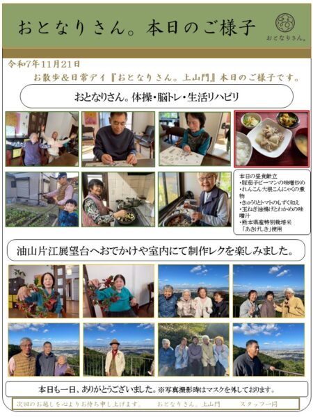 本日もご利用者様に沢山お手伝いして下さいました。