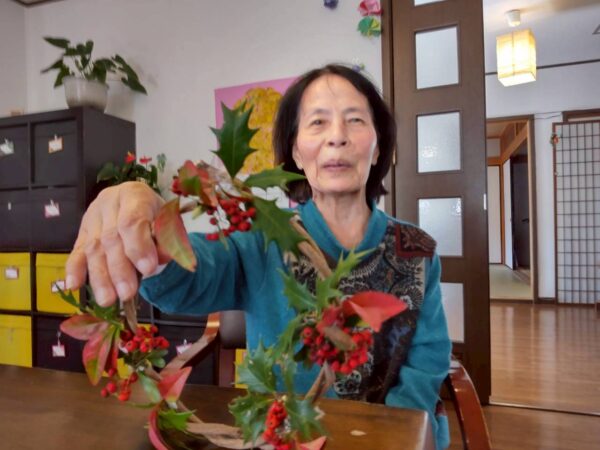 室内に残られたご利用者様は歌を楽しみながらリース作りに参加されました。