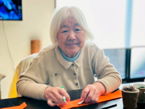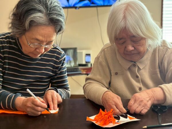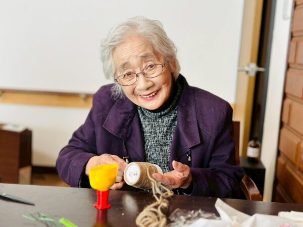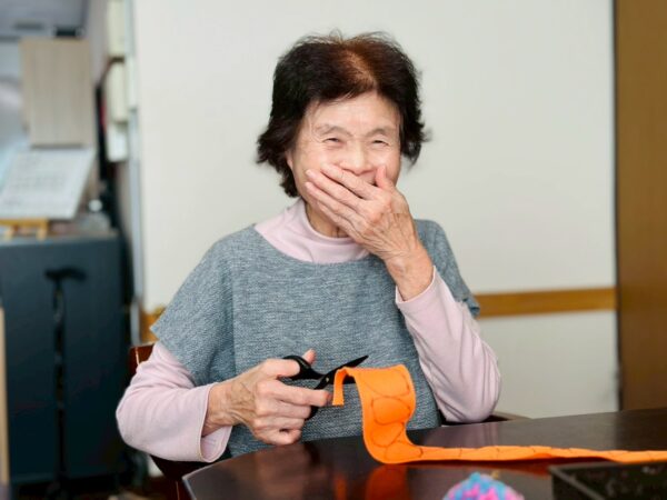 午前中の制作活動は、フェルト生地を使ってお花作りをしました。