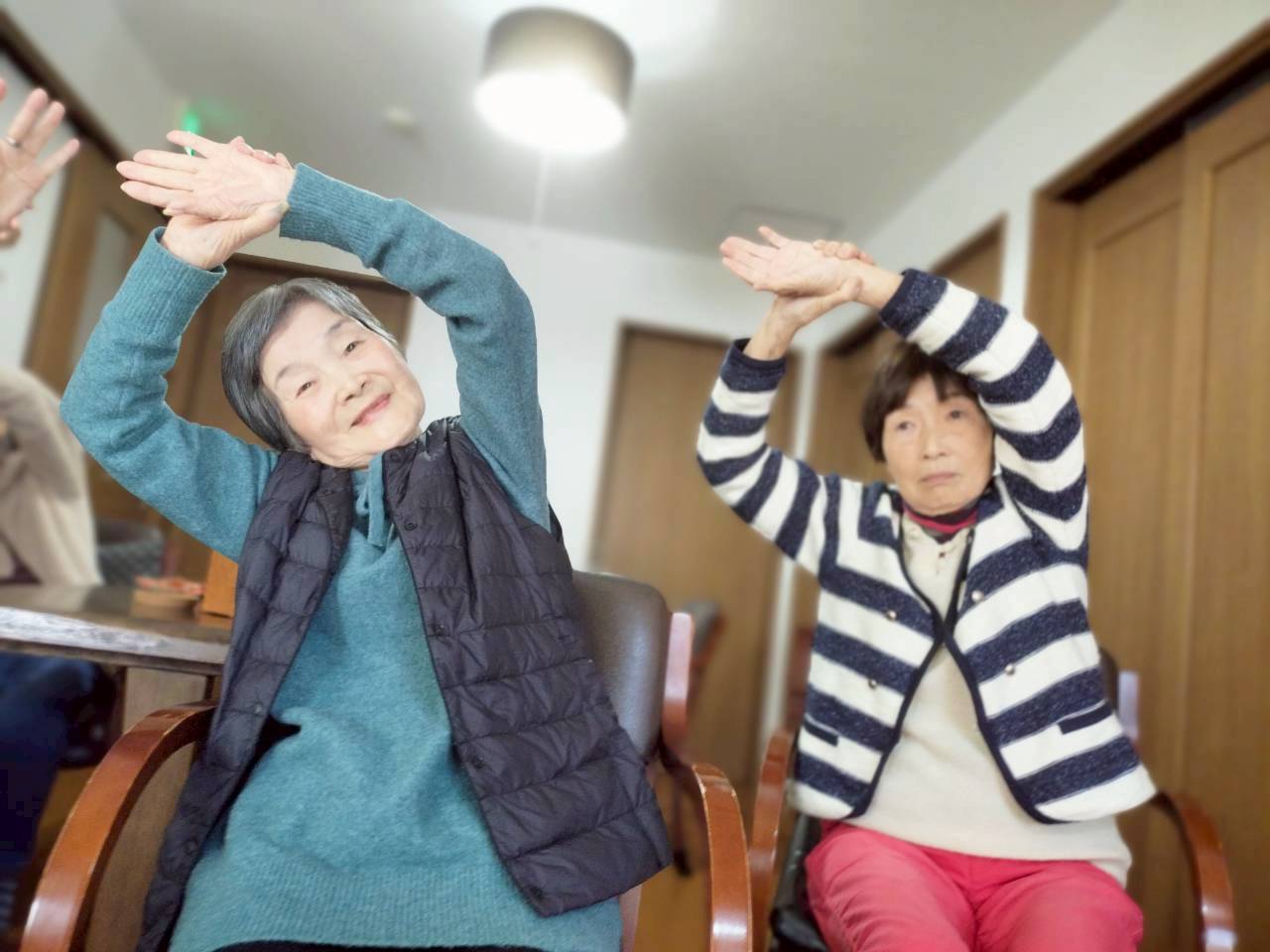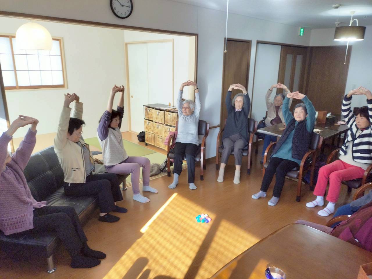午前中はボランティアさんと一緒にしゃきしゃき体操を行いました。体をしっかり動かしましたね。