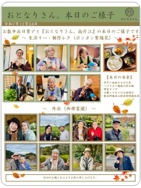 本日は、曇り模様となりましたがおとなりさん。南片江では今日も元気にスタートです!