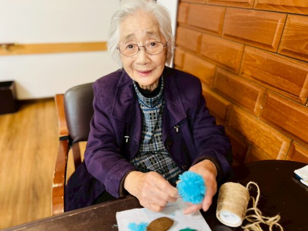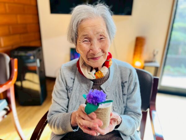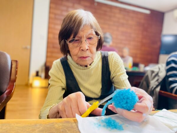 午前中は、毛糸のお花づくりをしました。