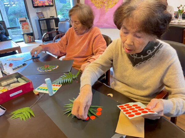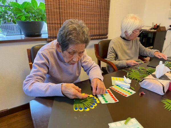 午前中の活動はしだの葉を使いクジャクをつくりました。完成しなかったので次回に。