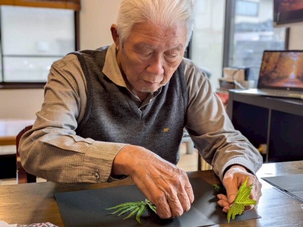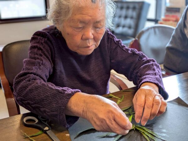 制作レクで使う葉っぱをお庭で採取してくださいました。