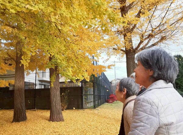 黄金色に輝くイチョウの葉、風が吹くと舞い踊り、とても綺麗でした♪