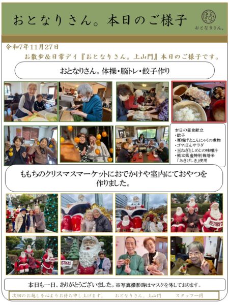 少し小雨が降るあいにくのお天気となりましたが、そんなお天気も吹き飛ぶくらい、ご利用者様の素敵な笑顔が溢れる楽しいクリスマスマーケットとなりました!