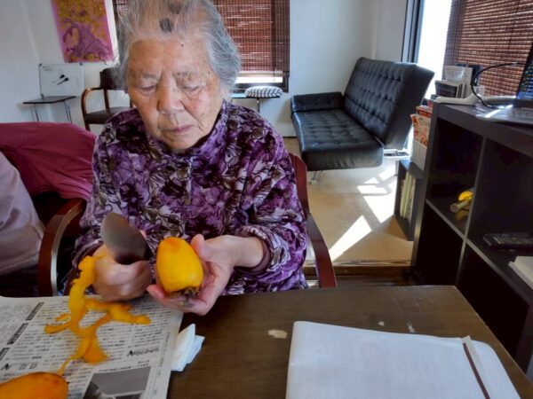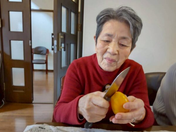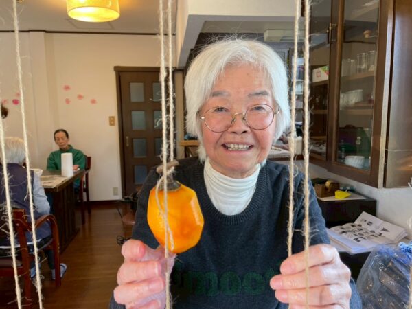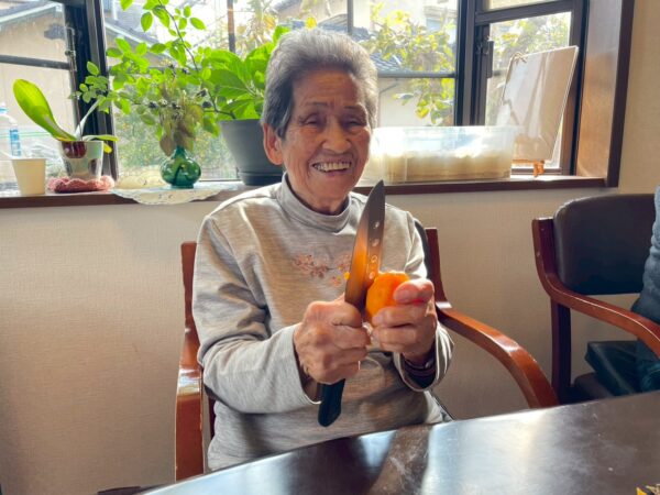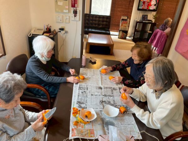 秋の味覚を楽しみながら、ご利用者様が干し柿の仕込みをしてくださいました。