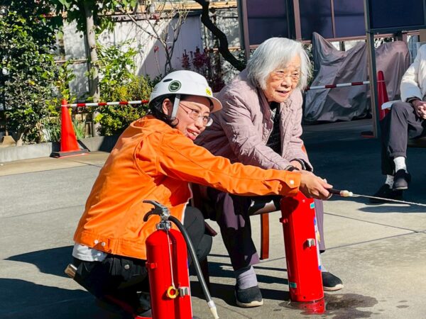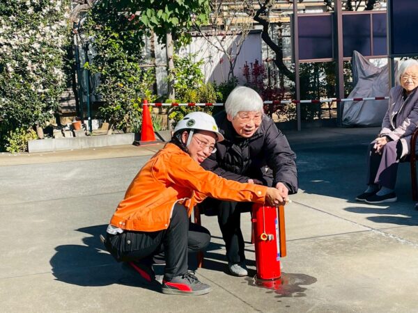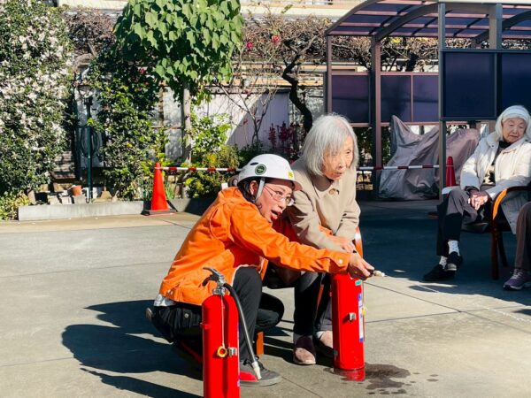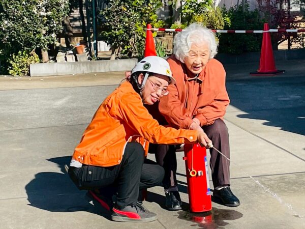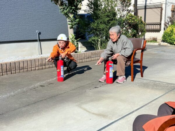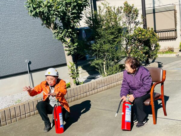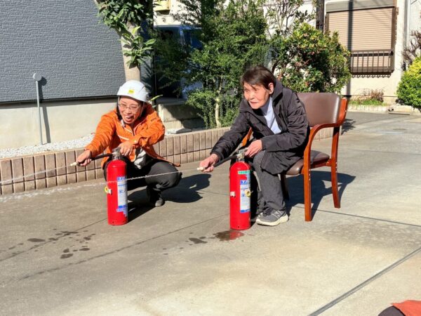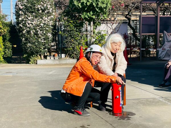 そして火災が起きた想定で、非常口から外へ避難しました。