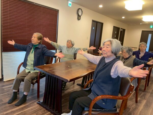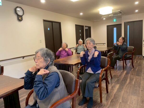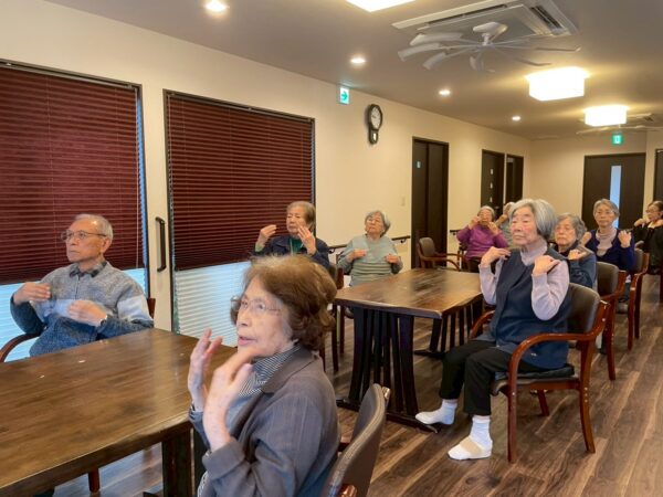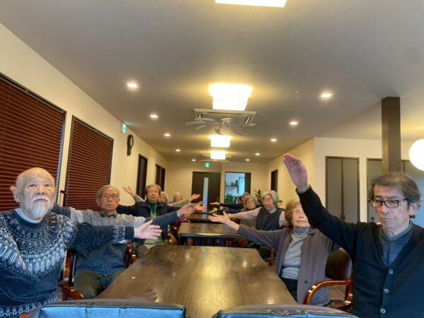 さあ!木枯らしに負けずに、本日もおとなりさん。元気に体操からスタートします。