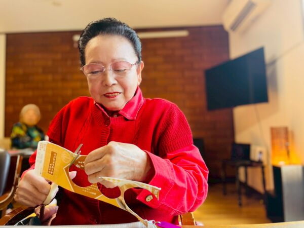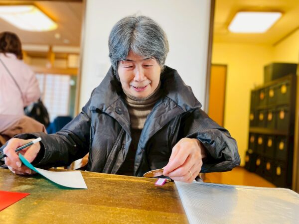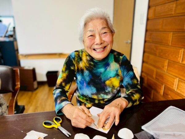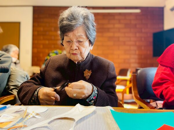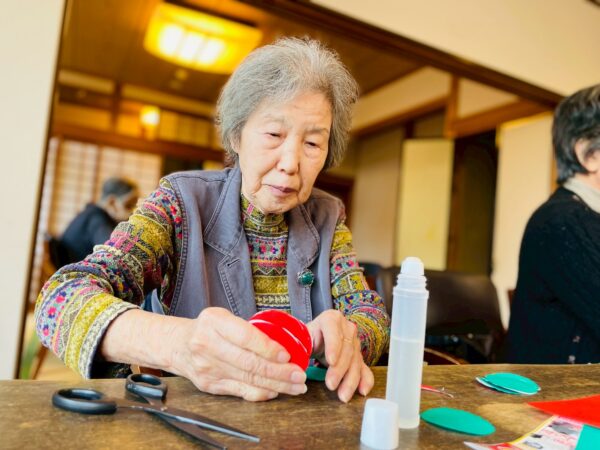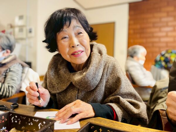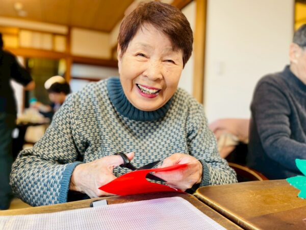 折り紙を丸く切って、貼り合わせたりと細かい工程がありましたが、皆様、熱心に取り組まれております!