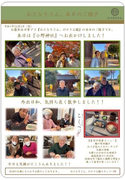 そんななか、おとなりさん。けやき公園では「小野神社」に外出しました。