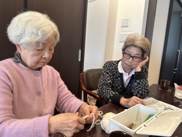午前は趣味の時間を楽しみました!皆様和気あいあいと取り組まれておりました。寒い時期になったためか、編み物を選択される人も増えております。