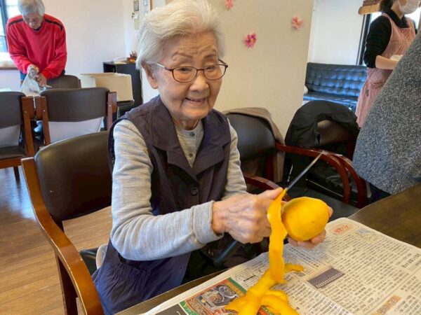 ご利用者様が干し柿の仕込みをしてくださいました。