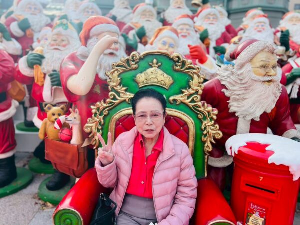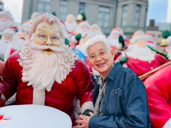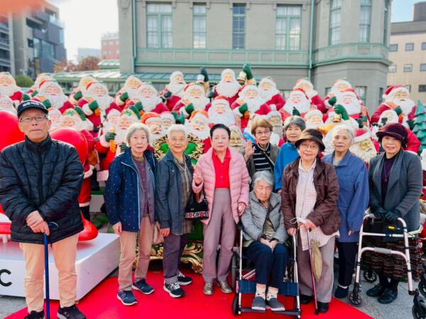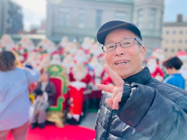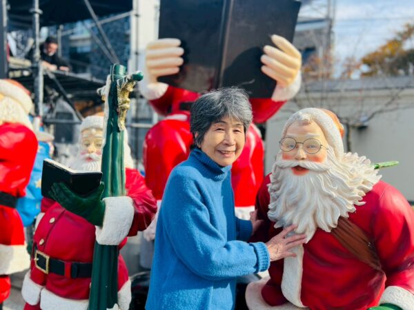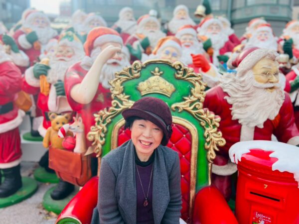 クリスマスの期間に、50体程のサンタクロースが飾り付けしてあります。12月に入り街はクリスマス一色ですね。
