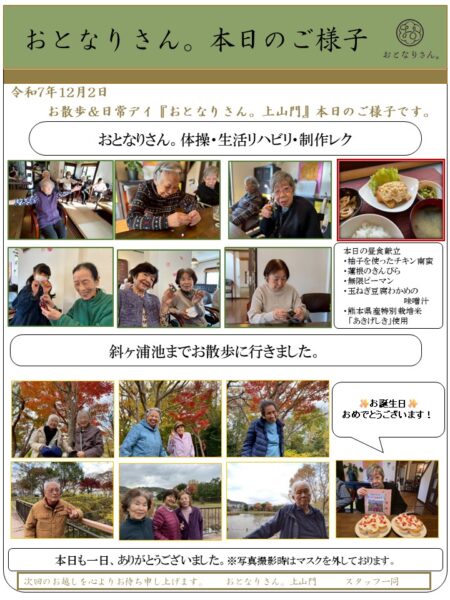 帰宅後は誕生日会を行いました。皆様「私の誕生日はいつやったかいな」「私にもしてくれた?」等大盛り上がりでした。