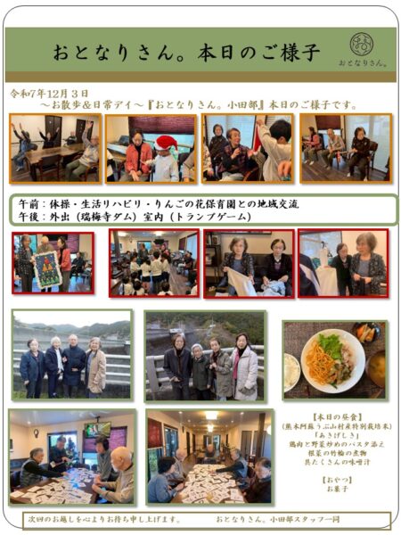 午後からは瑞梅寺ダムにお出かけと室内トランプゲームを行いました。瑞梅寺ダムの山茶花の花はまだまだ先のようですね。