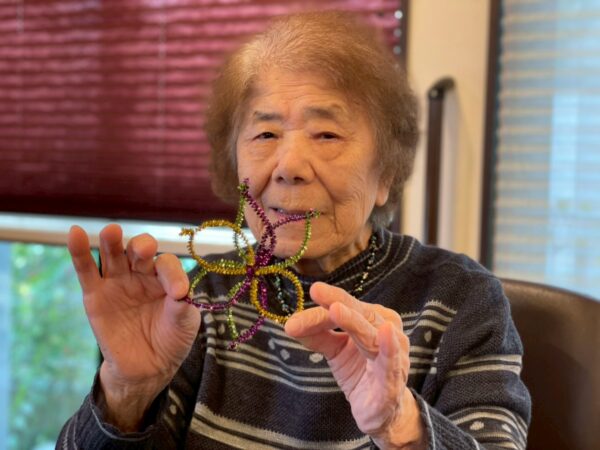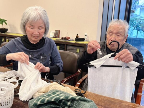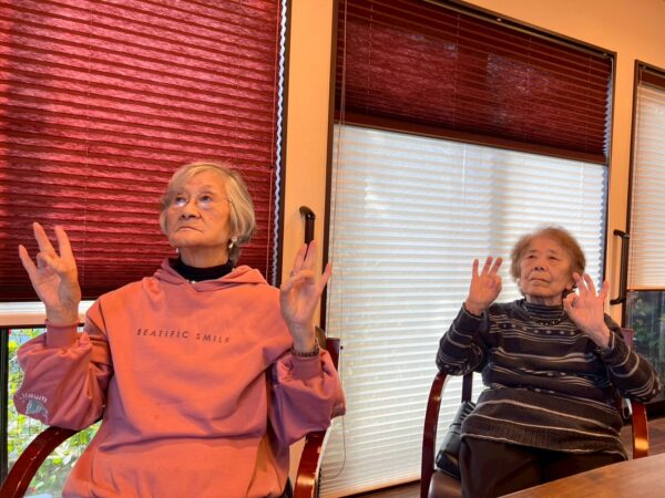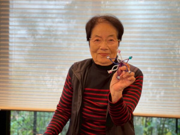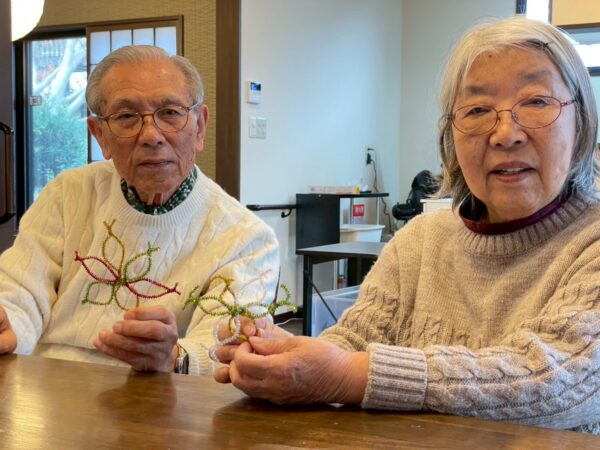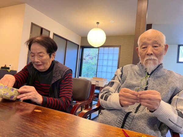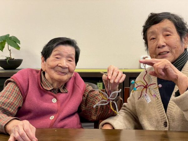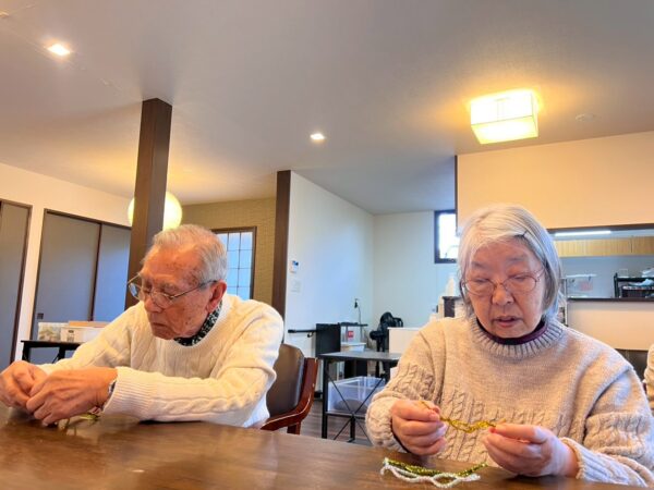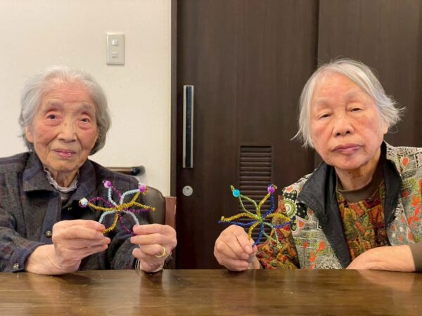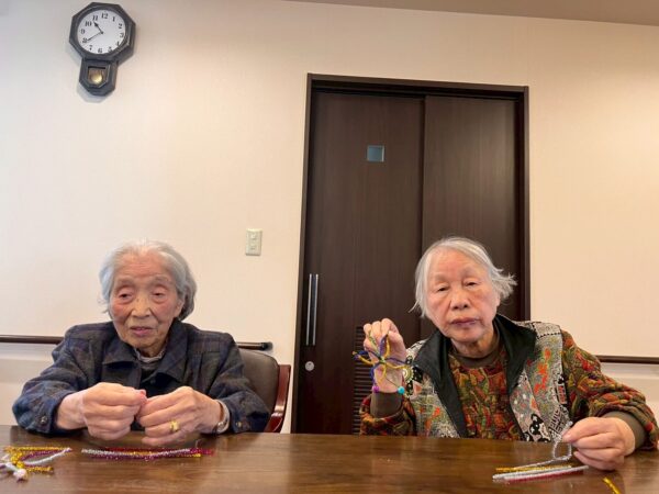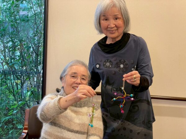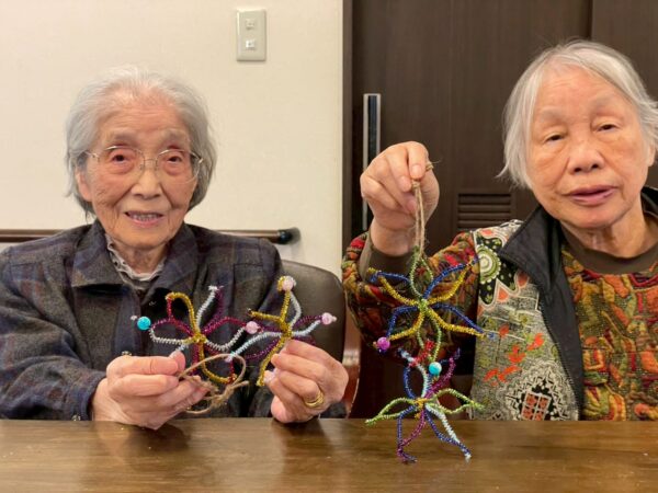 今日の製作レクはクリスマス飾りでも、雪の結晶型の飾りを作りました。
