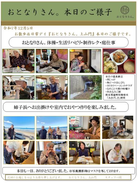 製作レク後お昼食の準備やご片付け、洗濯物干しをして下さいました。