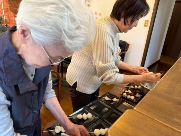 室内にてご利用者様がみんなで力合わせて、美味しい団子を作りました。
