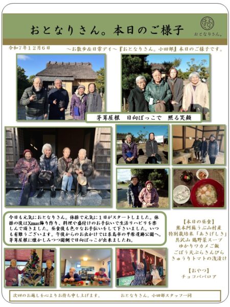 今日も元気におとなりさん。体操で元気に1日がスタートしました。体操の後はXmas飾りを作り、Xmasへの衣替えが進んで参りました。