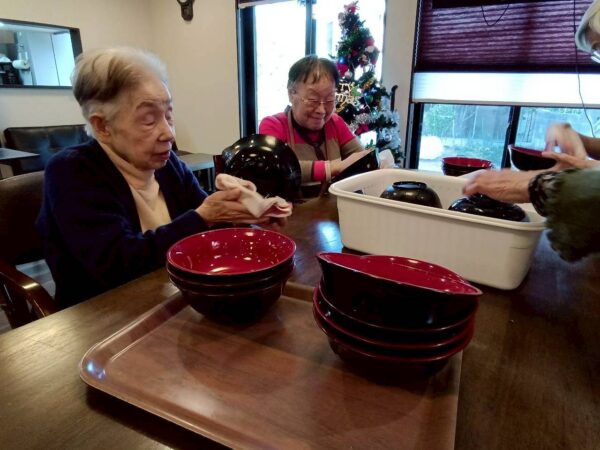 昼食前後は料理や盛付け、配膳や台拭き、食器の片付けに洗濯物まで、沢山のお手伝いで生活リハビリを楽しんで頂きました。本当にいつも有難うございます。