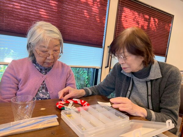 今日も元気におとなりさん。体操で元気に1日がスタートしました。体操の後はXmas飾りのリース作りをしました。皆さん各々色々な色遣いで個性が出ますね。素敵なリースが完成です。