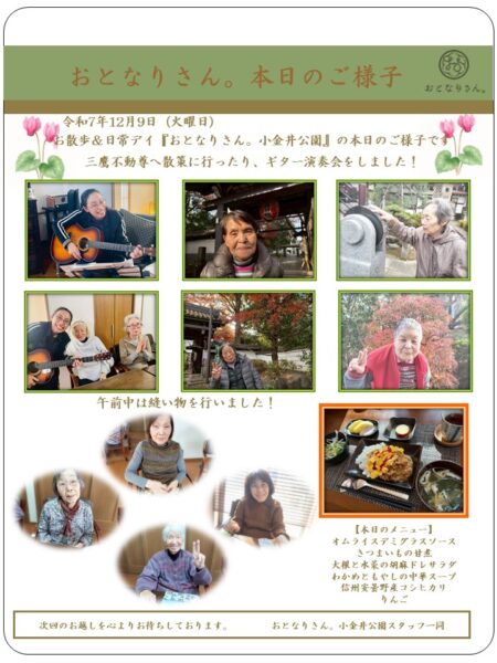 午後はギター演奏会、三鷹不動尊へ散策に行きました!
