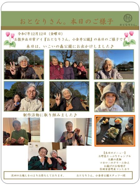 本日、おとなりさん。小金井公園では、いこいの森公園に