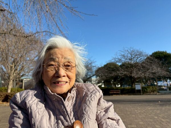 歩行訓練の後は、ベンチでひと休み
