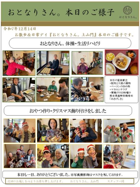 今日は天気が悪く寒い一日でしたがおとなりさん。では今日も笑顔で元気に過ごされました。