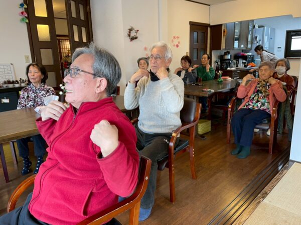 まずは、おとなりさん。体操で身体を暖めてもらいました。