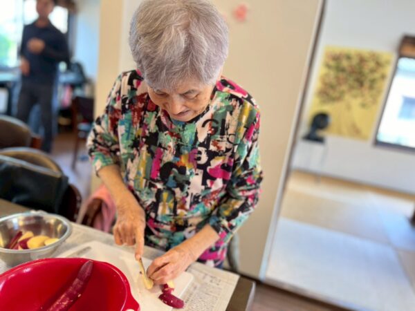 体操の後は料理のお手伝いや新聞たたみで生活リハビリです。