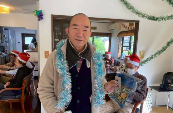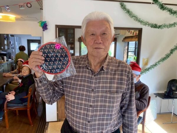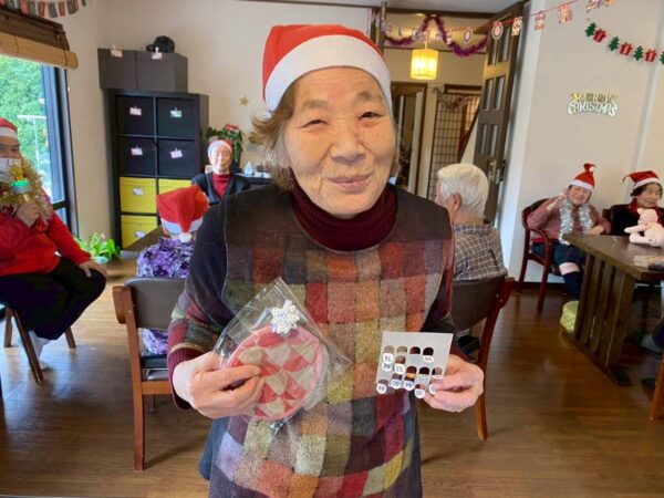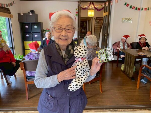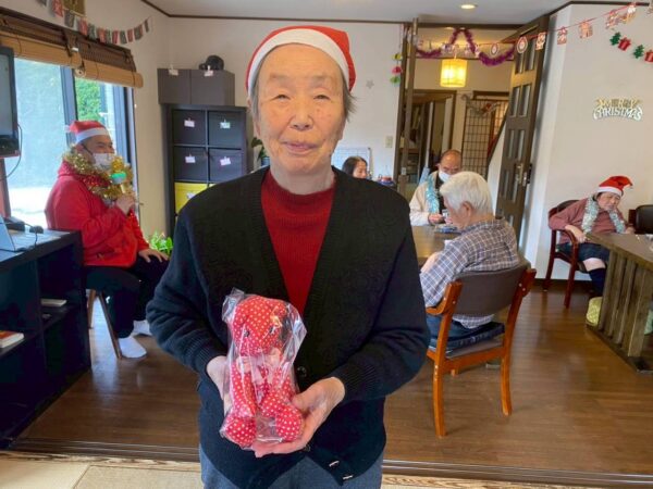 午前のレクでビンゴ大会を行いました。ビンゴが揃うとサンタクロースからプレゼント。このプレゼントはご利用者様が手作りして提供してくだっさたものです。可愛いポーチやぬいぐるみ等あり、皆さんビンゴが揃うたびに大喜びされていました。ありがとうございました。