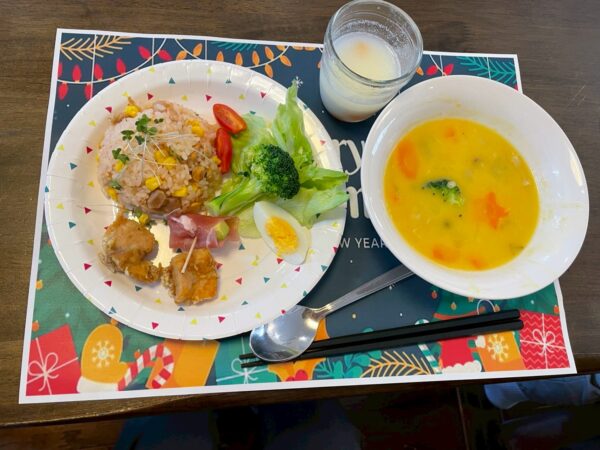 皆で準備したXmasメニューで美味しい昼食を頂きました。午後からはボカランブル様のアコーディオン演奏を堪能しました。