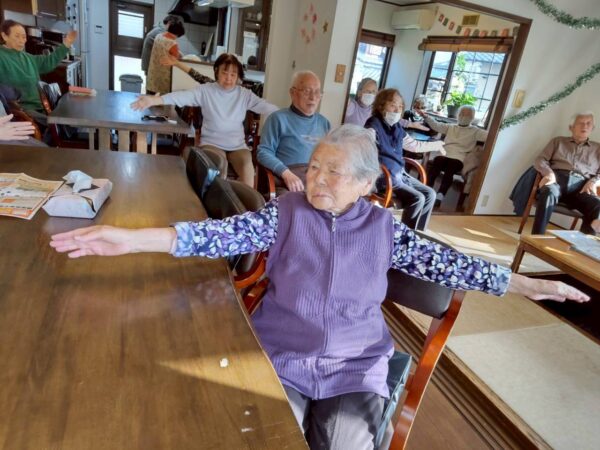 朝から曇天の冬空が広がり、一段と冷え込みが厳しく一日となりました。感染症対策のため、寒い中でも換気をしっかりと行いますので、皆様は体温調節のしやすい服装で、気温の変化には、十分ご注意くださいね。本日もおとなりさん。寒さに負けず元気に体操からスタートします。