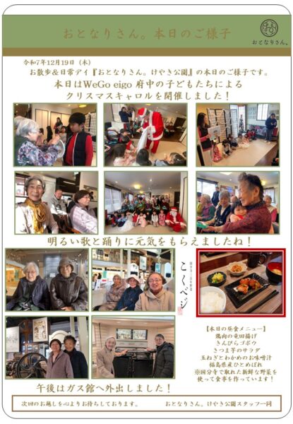 本日はwego eigo 府中の子どもたちによるクリスマスキャロルを開催しました。