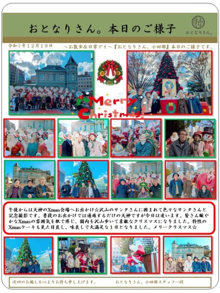 皆さん賑やかなXmasの雰囲気を肌で感じ、園内を沢山歩いて素敵なクリスマスになりました。